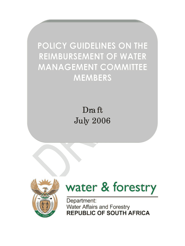 POLICY GUIDELINES ON THE REIMBURSEMENT OF WATER MANAGEMENT COMMITTEE MEMBERS DIRECTORGENERAL Draft July 2006 Final Draft Policy Guidelines on Reimbursement.doc ACKNOWLEDGEMENTS These policy guidelines