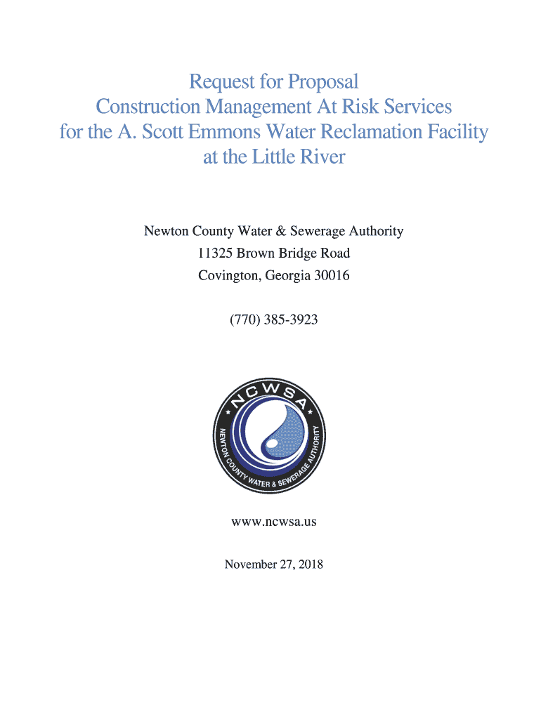 Request for Proposal Construction Management At Risk Services for the A. Scott Commons Water Reclamation Facility at the Little River Newton County Water & Sewerage Authority 11325 Brown Bridge Road