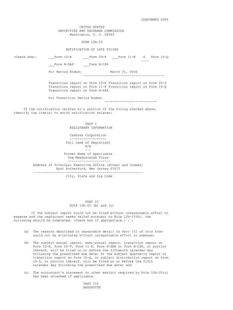 CONFORMED COPY UNITED STATES SECURITIES AND EXCHANGE COMMISSION Washington, D. C. 20549 FORM 12b25 NOTIFICATION OF LATE FILING (Check One): Form 10K Form 20F Form 11KX Form 10Q Form NEAR Form Cursor