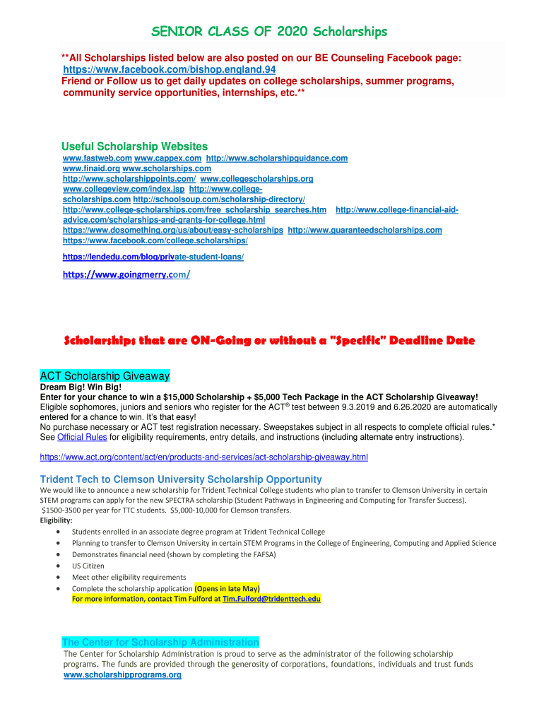 SENIOR CLASS OF 2020 Scholarships