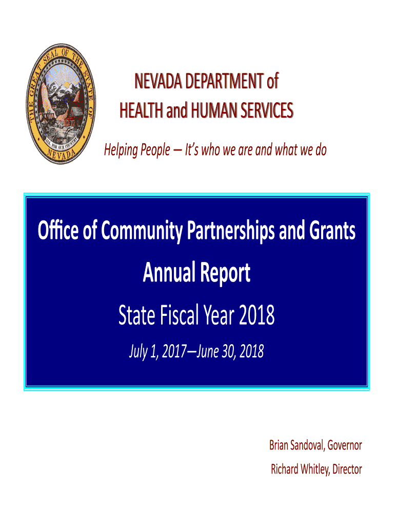 N ADA DEPARTMENT D APARTMENT of NEVADA HEALTH, HEALTH and HUMAN SERVICES SERVICESHelping People It's who we are and what we dolce of Community Partnerships and GrantsAnnual Report State Fiscal Year