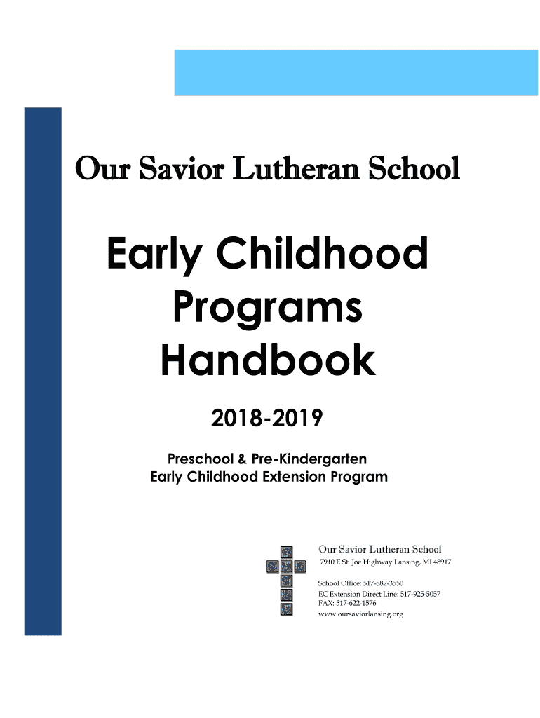 Our Savior Lutheran Scholarly Childhood Programs Handbook 20182019 Preschool & PreKindergarten Early Childhood Extension Program201415Our Savior Lutheran School 7910 E St. Joe Highway Lansing, MI