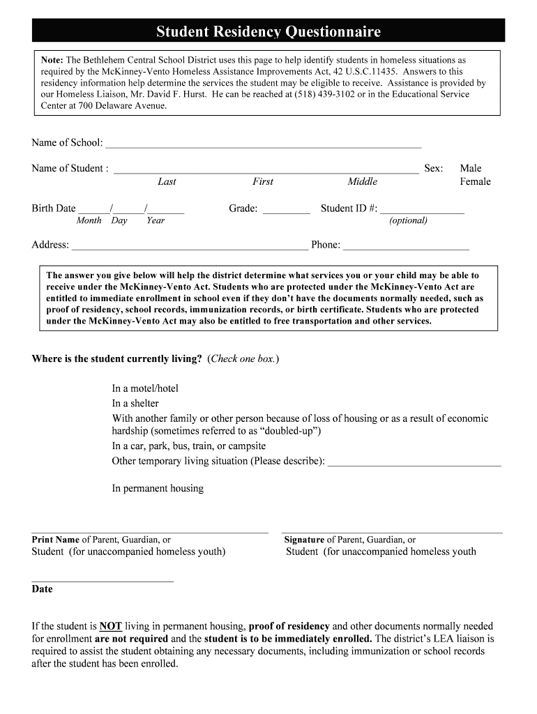 Note: The Bethlehem Central School District uses this page to help identify students in homeless situations as