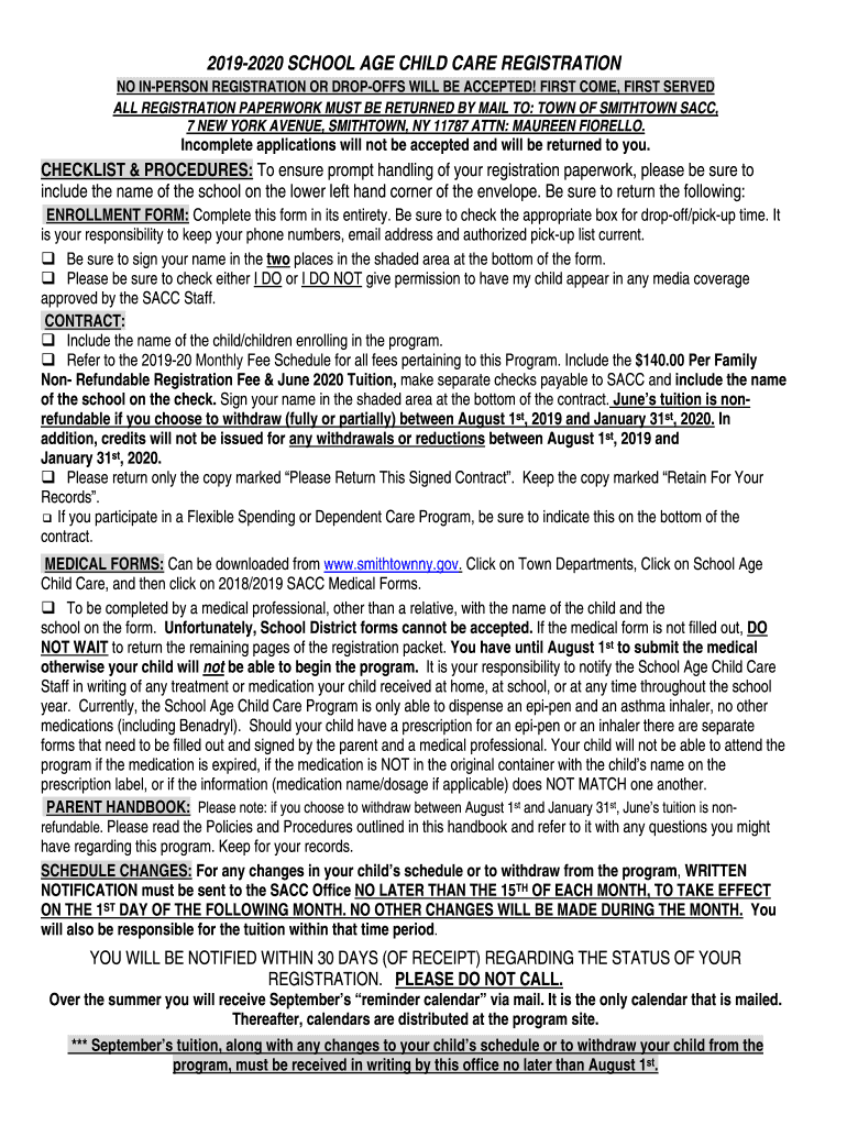 Get the free TOWN OF SMITHTOWN SCHOOL AGE CHILD CARE ...