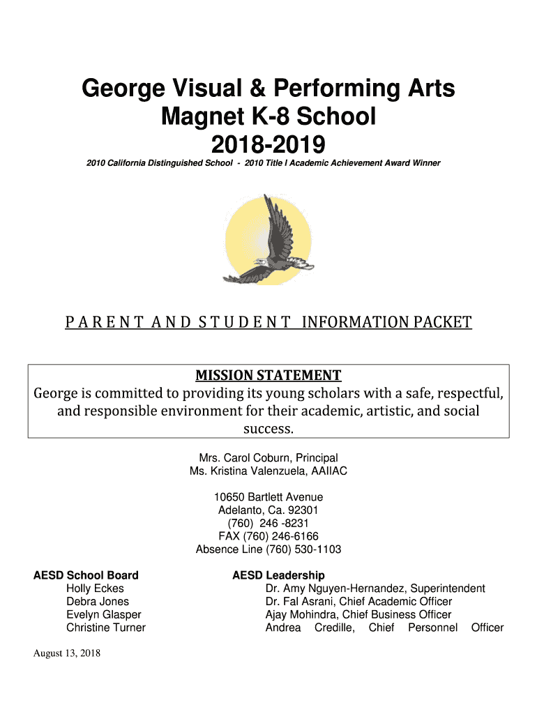 George Visual & Performing Arts Magnet K8 School 20182019 2010 California Distinguished School 2010 Title I Academic Achievement Award Winner A R E N T A N D S T U D E N T INFORMATION PACKET MISSION