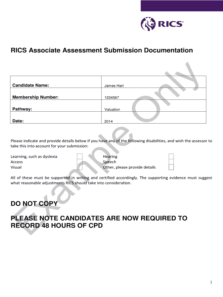 Candidates who are pursuing RICS Associate membership are required to file RICS Associate Assessment Submission.