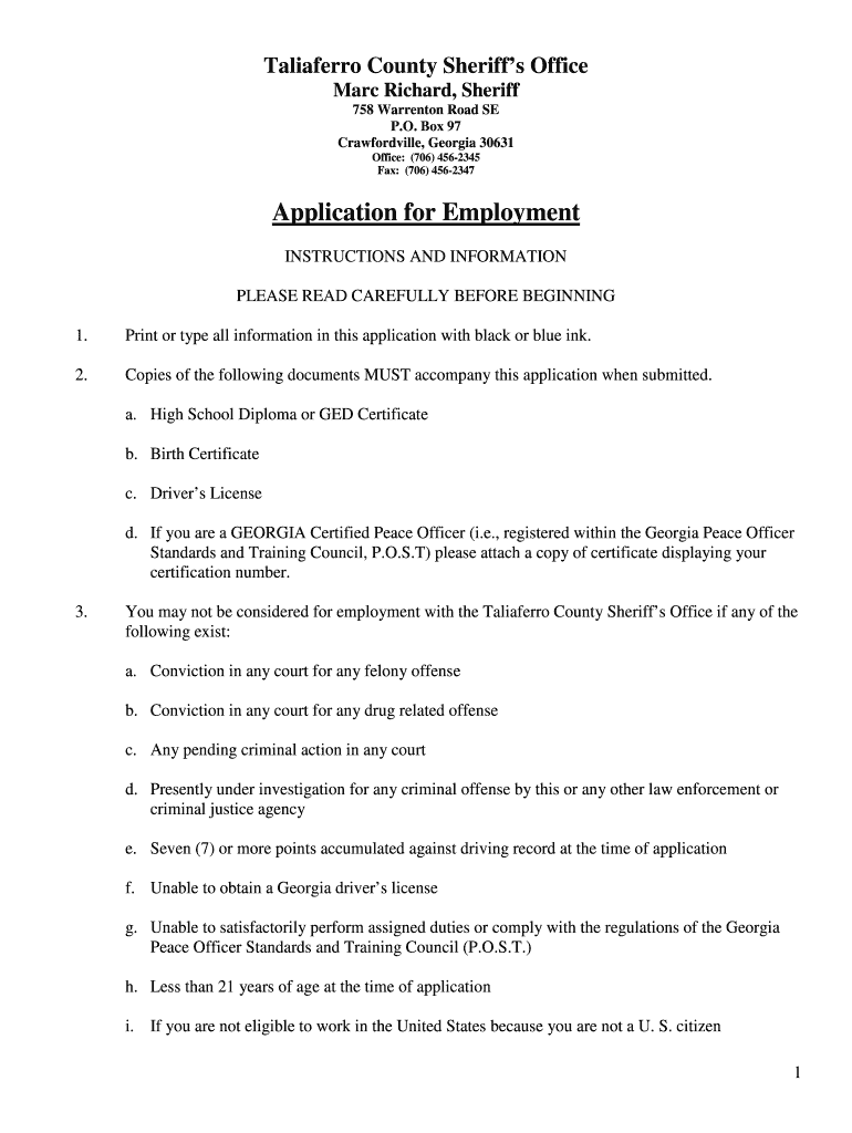 How to fill out taliaferro county sheriffs office
