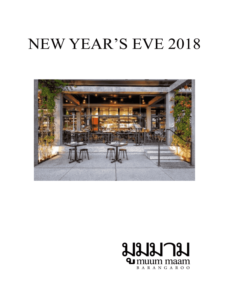 New Year's EVE 2018New Years Eve Set Menu Adult Set Menu $80 per person (Min4 Persons*) Option Kangaroo Reserve Firework Ticket $41.80 Entire Morton bay bug betel leaf w peanut, lime, chili & toasted