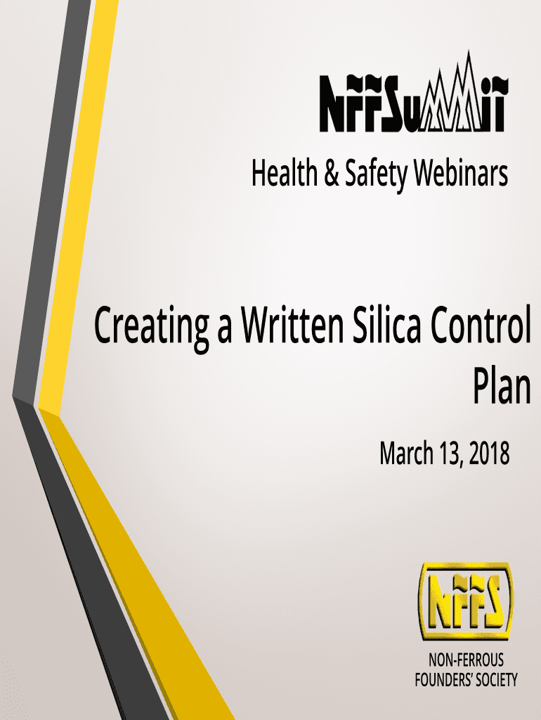 Health & Safety WebinarsCreating a Written Silica Control Plan March 13, 2018NONFERROUS FOUNDERS SOCIETYThis webinar and all associated materials are Copyright 2018 by Nonferrous Founders Society