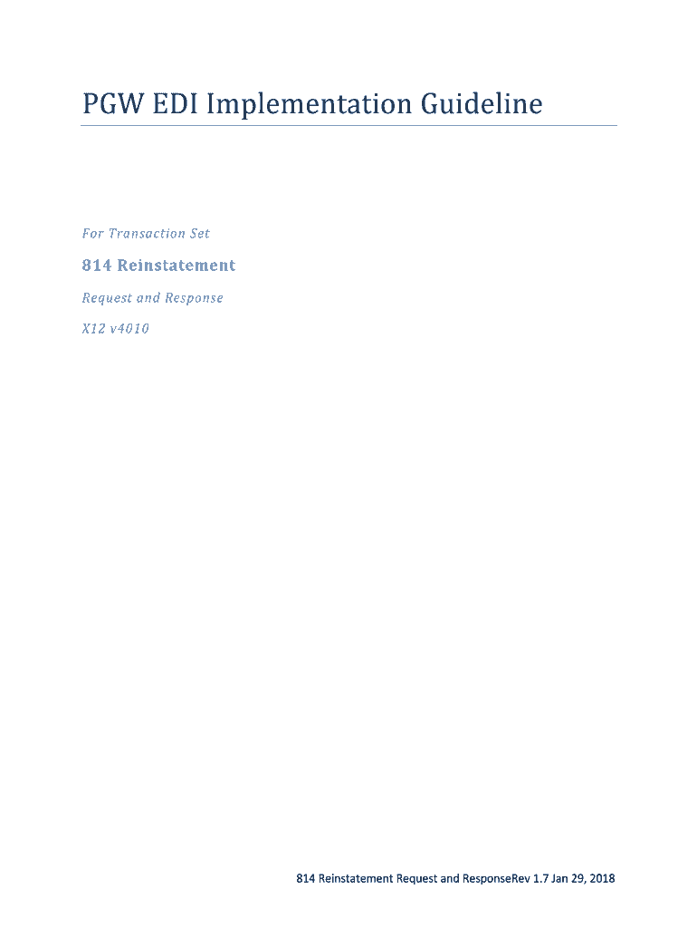 PAW EDI Implementation Guidelines Transaction Set814 Reinstatement Request and Response X12 v4010814 Reinstatement Request and Response Rev 1.7 Jan 29, 2018814 ReinstatementContents Revision Notes: