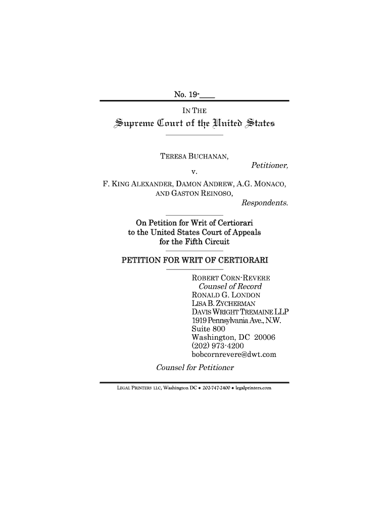 No. 19 IN THE TERESA BUCHANAN, v. Petitioner, F. KING ALEXANDER, DAMON ANDREW, A.G. MONACO, AND GASTON REYNOSO, Respondents. On Petition for Writ of Certiorari to the United States Court of Appeals