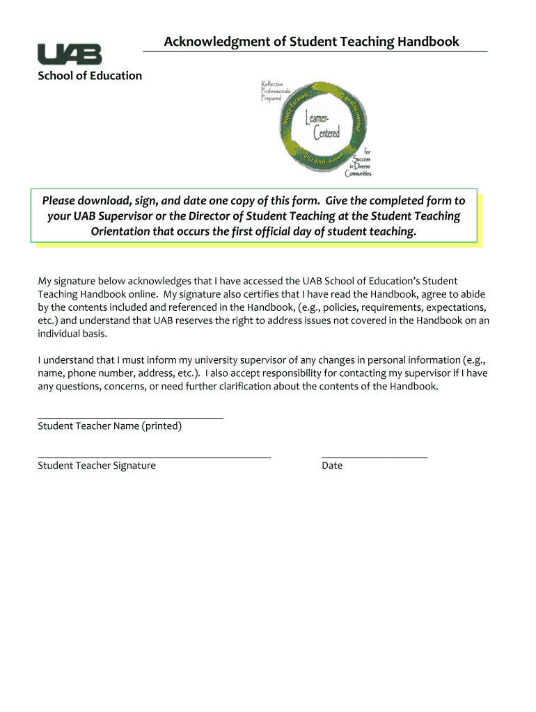 Get the free Online uab Acknowledgement of Student Teaching ...