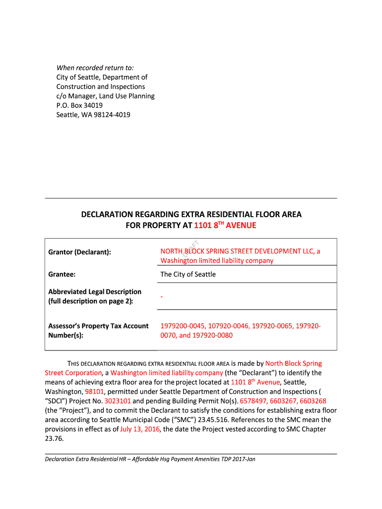 Get the free declaration regarding extra residential floor area for property ... - Seattle