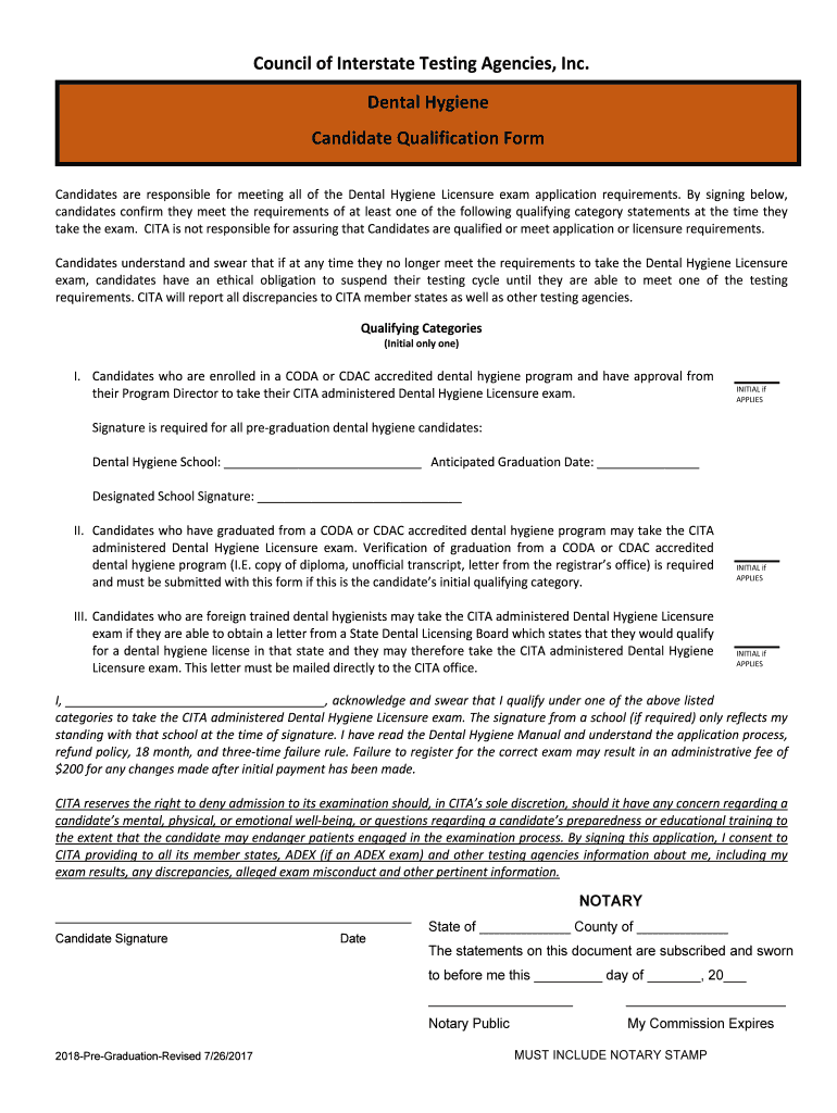 How to fill out dental hygiene candidate qualification?