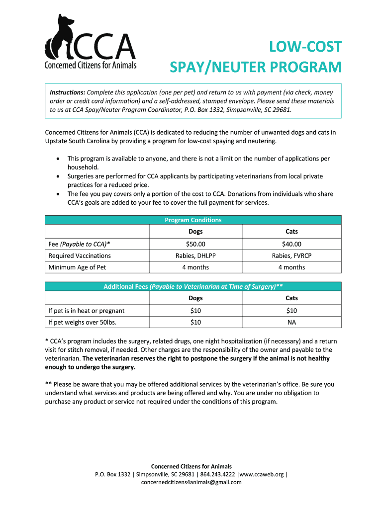 Fill out your low-cost spayneuter program online with pdfFiller!