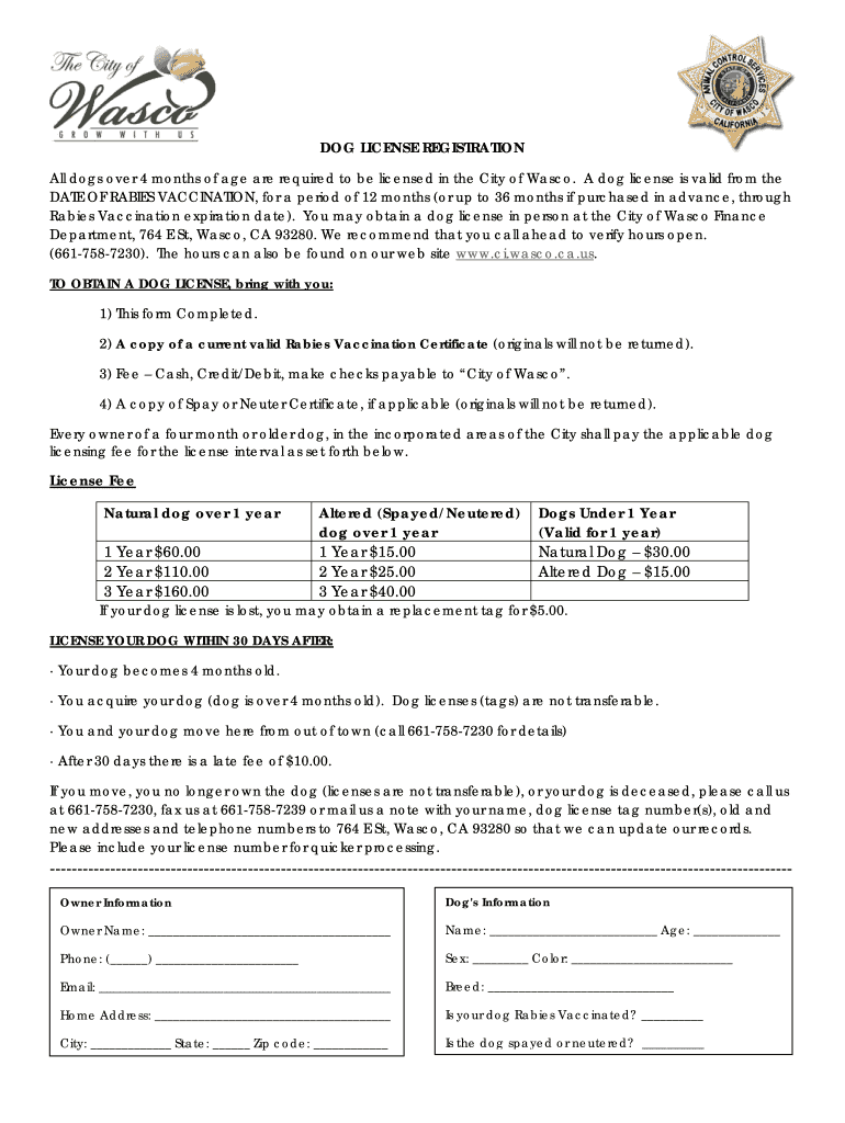 DOG LICENSE REGISTRATION