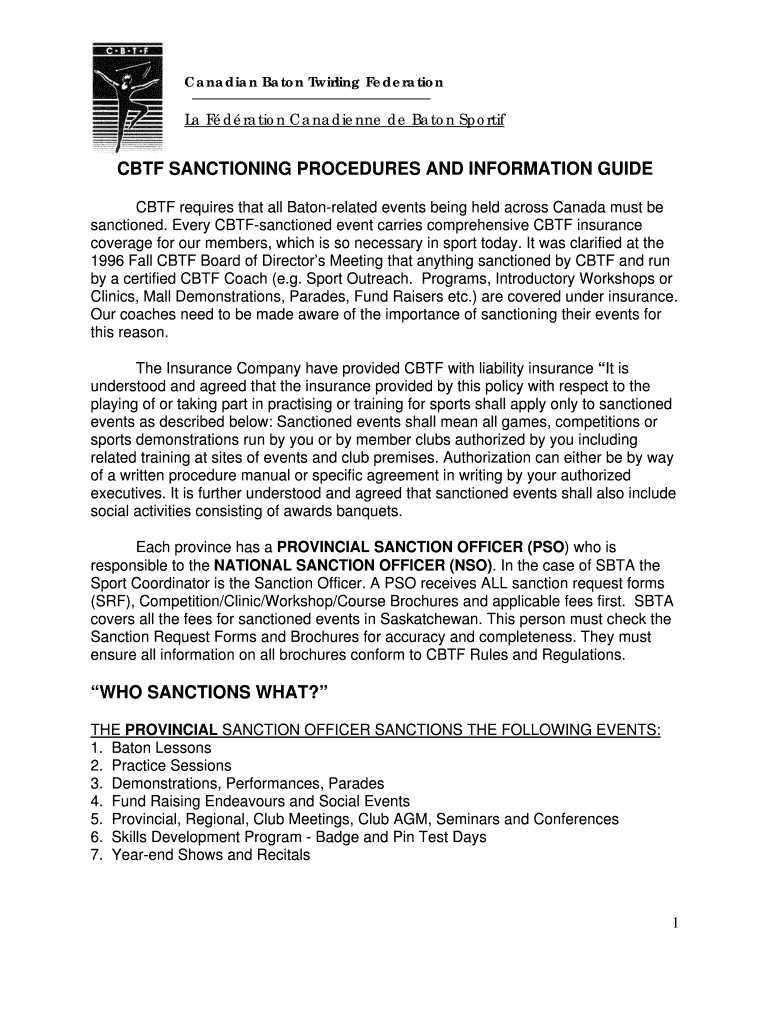 La Formation Canadian de Baton SportifCBTF SANCTIONING PROCEDURES AND INFORMATION GUIDE