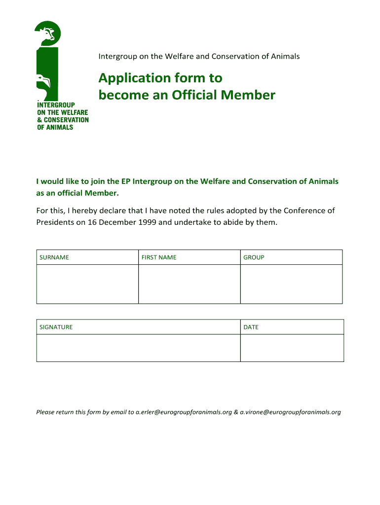 Get the free Application form to become an Official Member - Animal ...