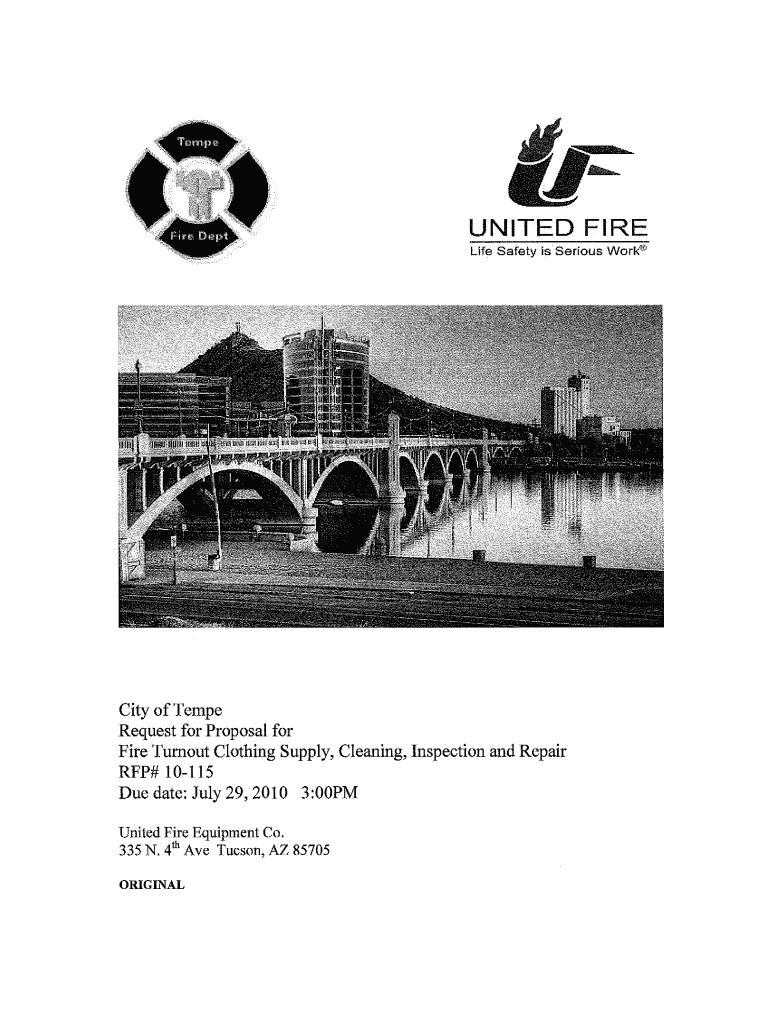UNITED FIRE Life Safety is Serious Works City of Tempe Request for Proposal for Fire Turnout Clothing Supply, Cleaning, Inspection and Repair RFP14 10115 Due date: July 29, 2010 3:00PM United Fire