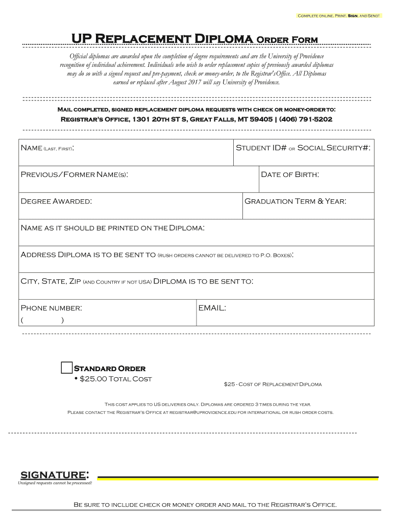 Get the free UP Replacement Diploma Order Form - University of Providence