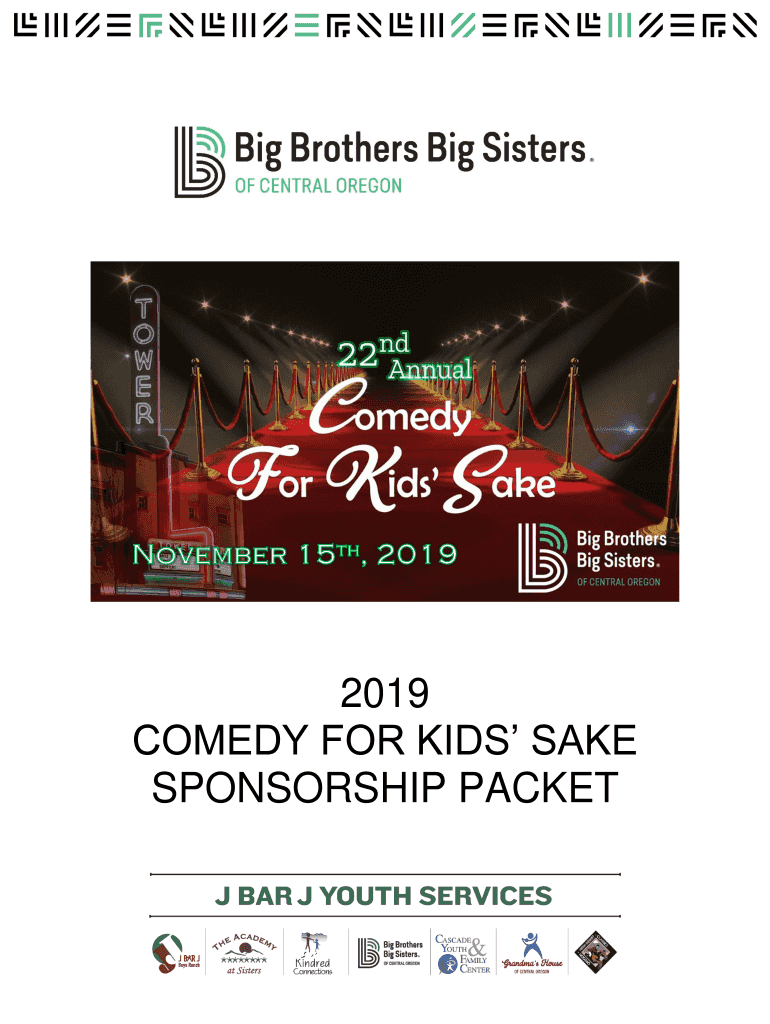 2019 COMEDY FOR KIDS SAKE SPONSORSHIP PACKETSPONSORSHIP OPPORTUNITIESPresenting Sponsor $5,000 This sponsorship will support funding for our CommunityBased Programs background checks, family intake