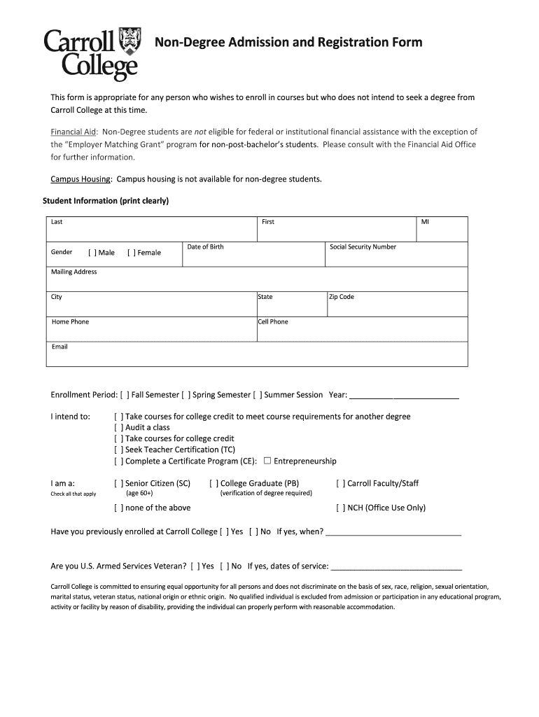 Get the free Non-Degree Admission and Registration Form