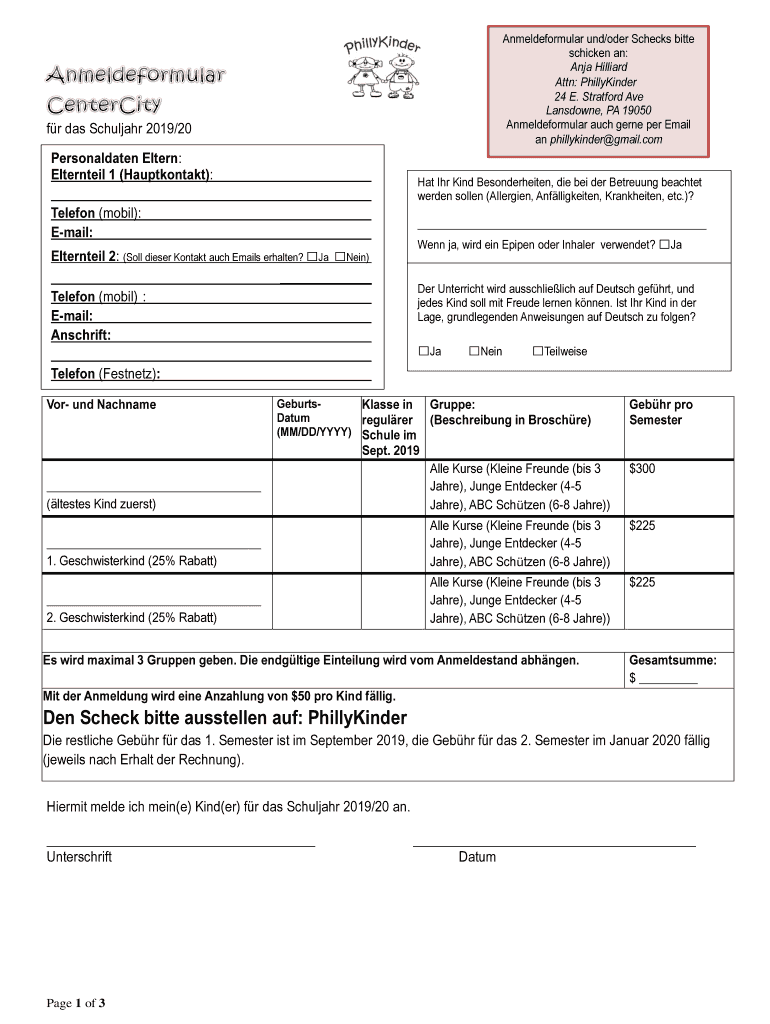 Anmeldeformular UND/Oder Checks bitter chicken an: Anja Billiard Attn: PhillyKinder 24 E. Stratford Ave Landowner, PA 19050 Anmeldeformular such genre per Email a phillykinder Gmail. Comdr was Scholar