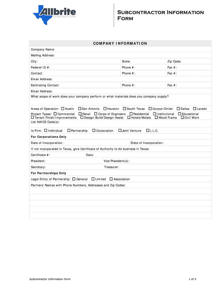 Edit your subcontractor information form form online