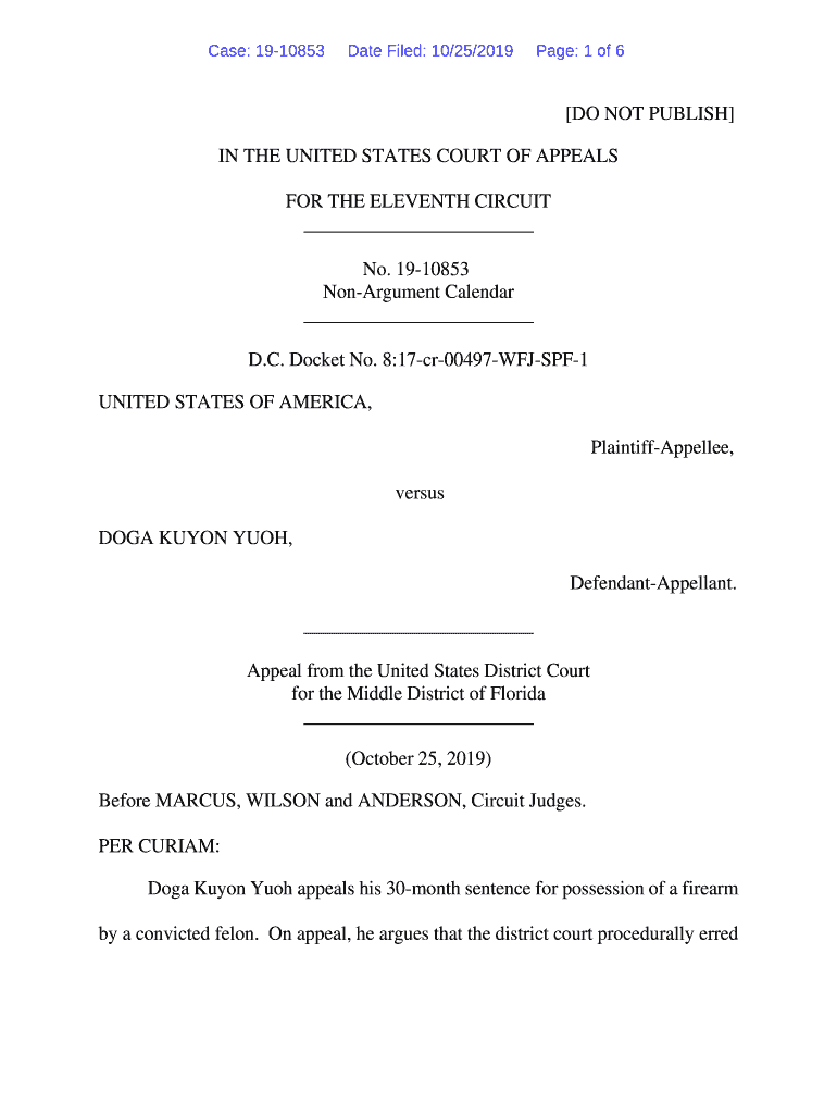 Case: 1910853Date Filed: 10/25/2019Page: 1 of 6 DO NOT PUBLISH IN THE UNITED STATES COURT OF APPEALS FOR THE ELEVENTH CIRCUIT No. 1910853 Argument Calendar D.C. Docket No. 8:17cr00497WFJSPF1 UNITED