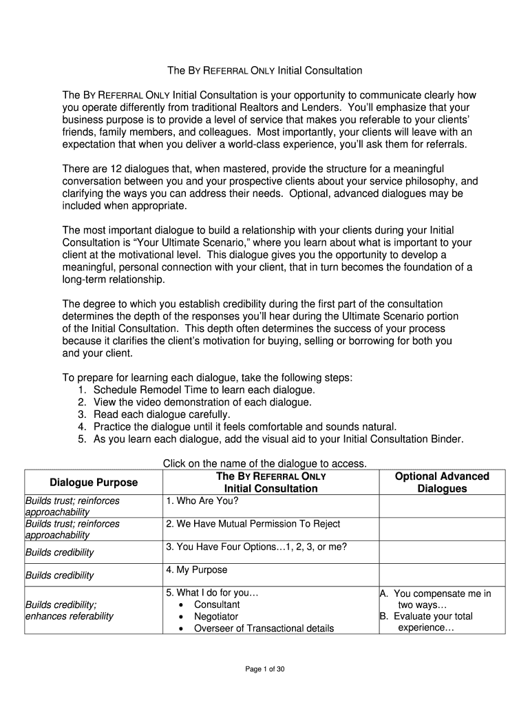 The BY REFERRAL ONLY Initial Consultation