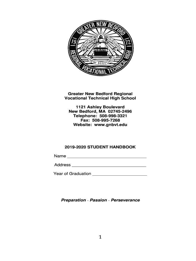 Greater New Bedford Regional Vocational Technical High School 1121 Ashley Boulevard New Bedford, MA 027452496 Telephone: 5089983321 Fax: 5089957268 Website: www.gnbvt.edu20192020 STUDENT HANDBOOK