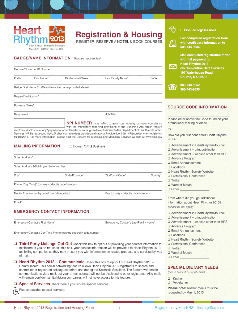 HRSonline.org/SessionsRegistration & Housing completed registration form with credit card information to 5087439636REGISTER, RESERVE A HOTEL & BOOK COURSESBadge/Name Informational completed registration