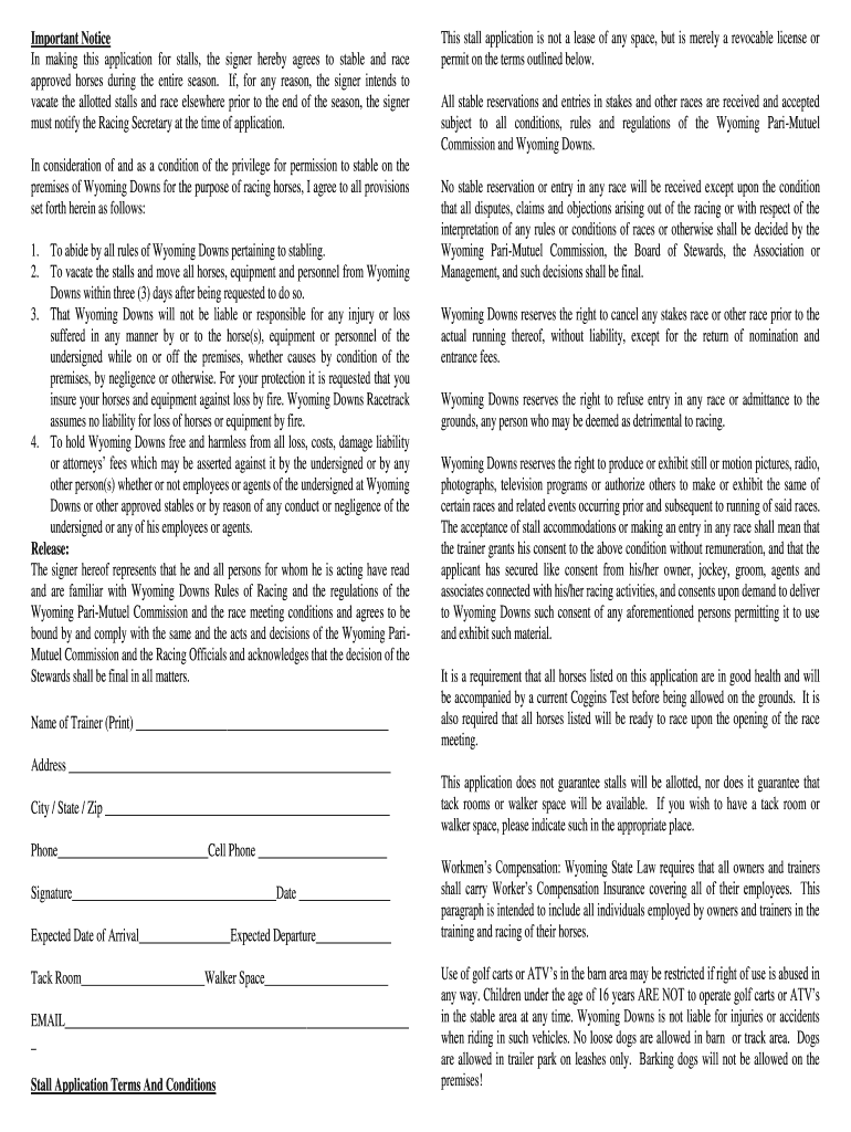 Get the free Notice of stabling acceptance will be mailed to trainer. DO ...
