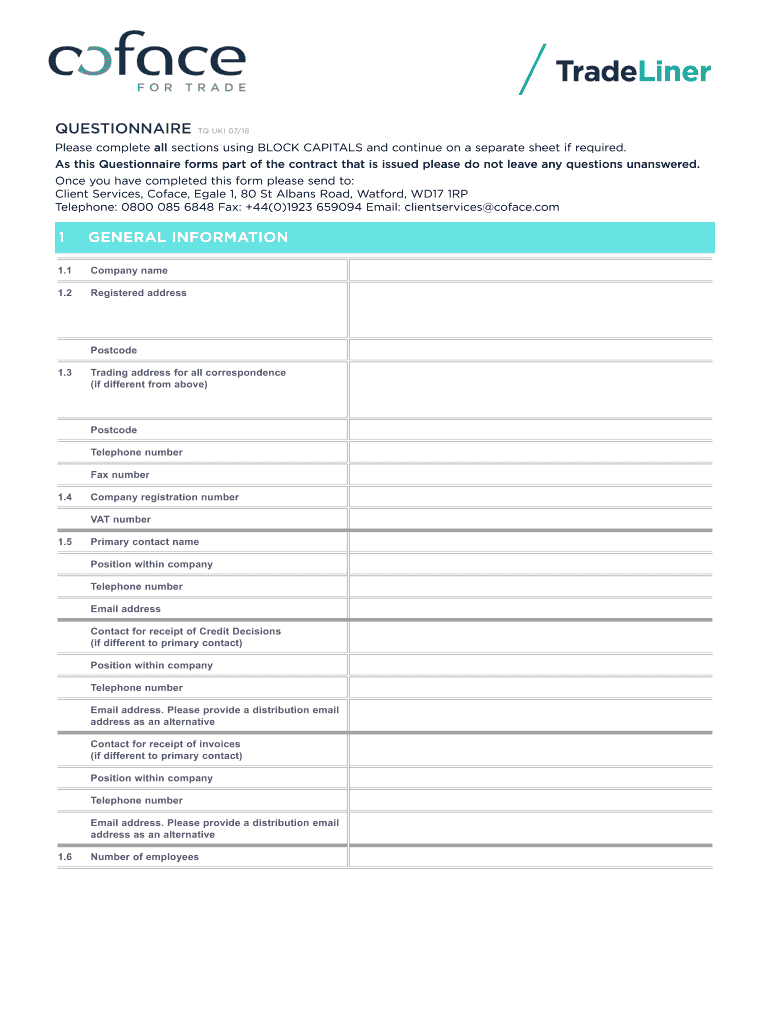 QUESTIONNAIRE UK 07/18Please complete all sections using BLOCK CAPITALS and continue on a separate sheet if required.