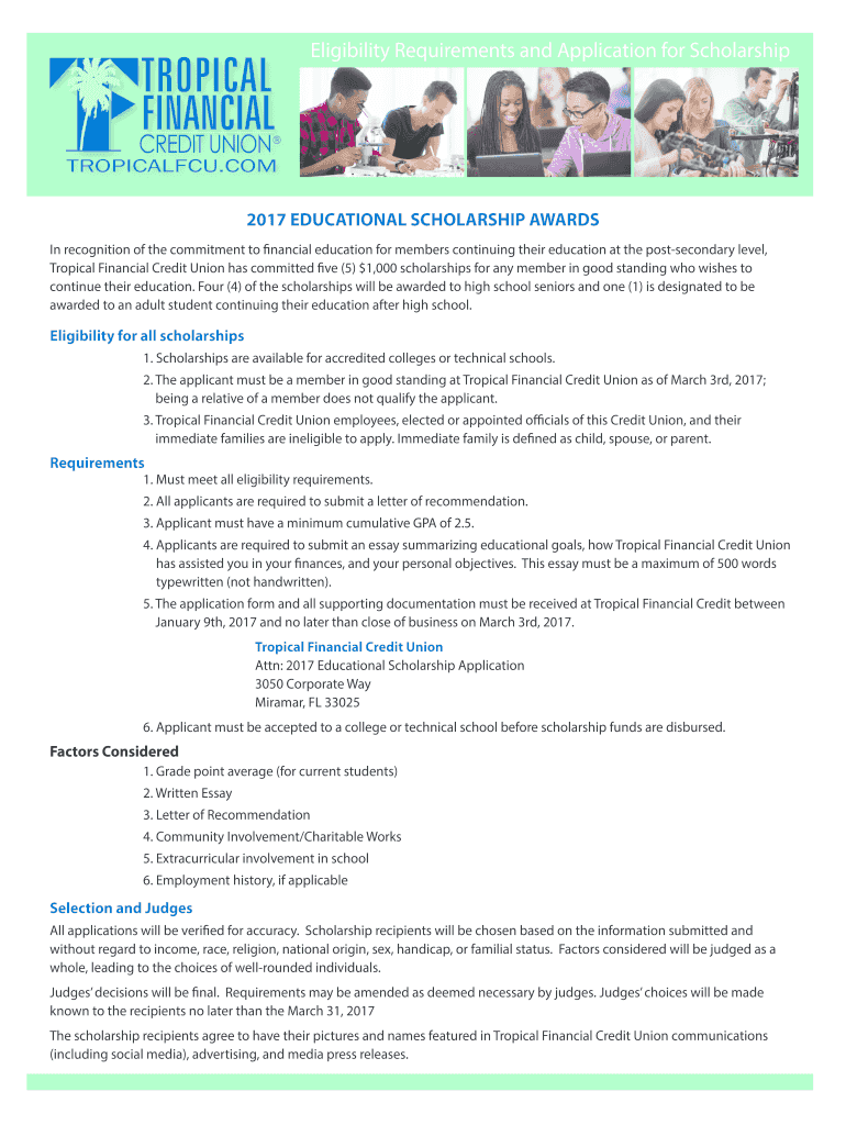 Eligibility Requirements and Application for Scholarship2017 EDUCATIONAL SCHOLARSHIP AWARDS
