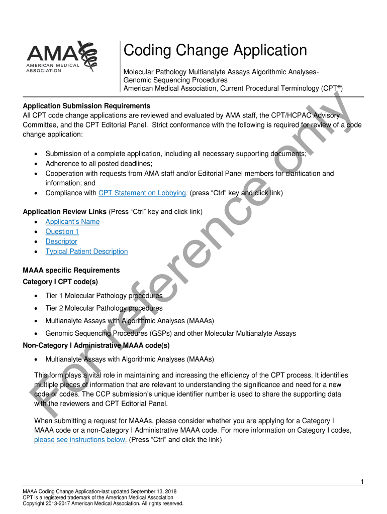 Coding Change Application Molecular Pathology Multianalyte Assays Algorithmic AnalysesGenomic Sequencing Procedures American Medical Association, Current Procedural Terminology (CPT) Application Submission