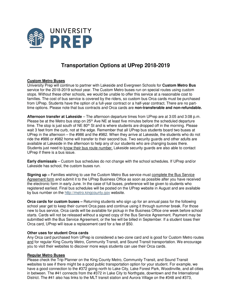 University Prep will continue to partner with Lakeside and Evergreen Schools for Custom Metro Bus