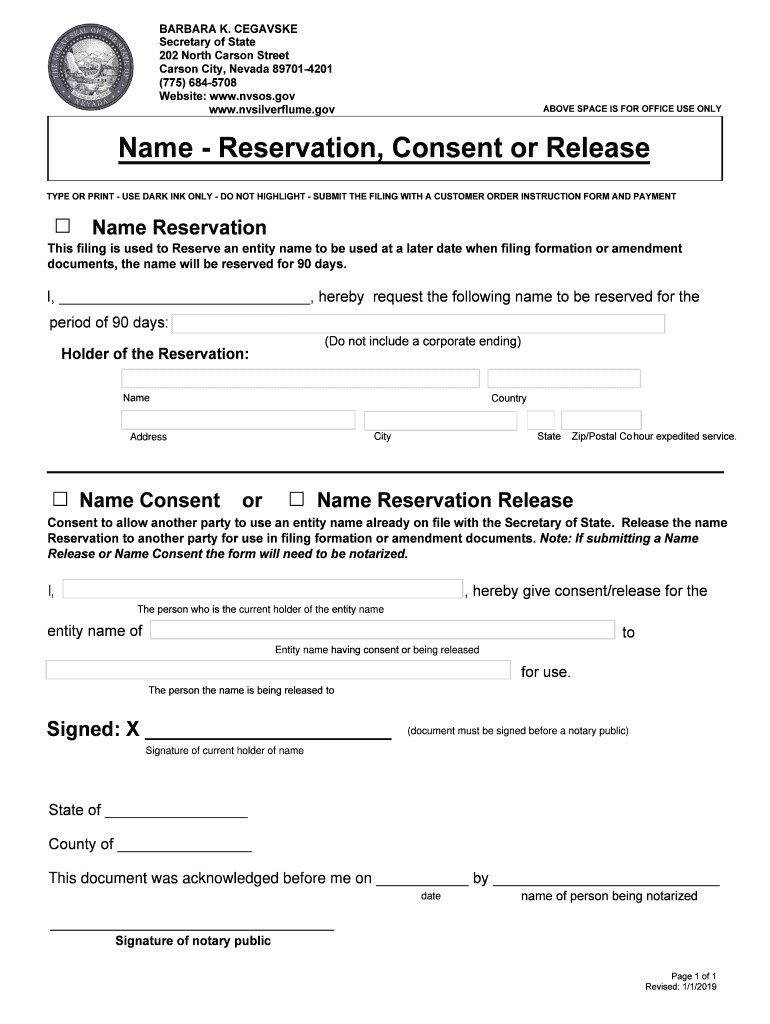 BARBARA K. CEASE Secretary of State 202 North Carson Street Carson City, Nevada 897014201 (775) 6845708 Website: www.nvsos.gov www.nvsilverflume.govABOVE SPACE IS FOR OFFICE USE Online Reservation,