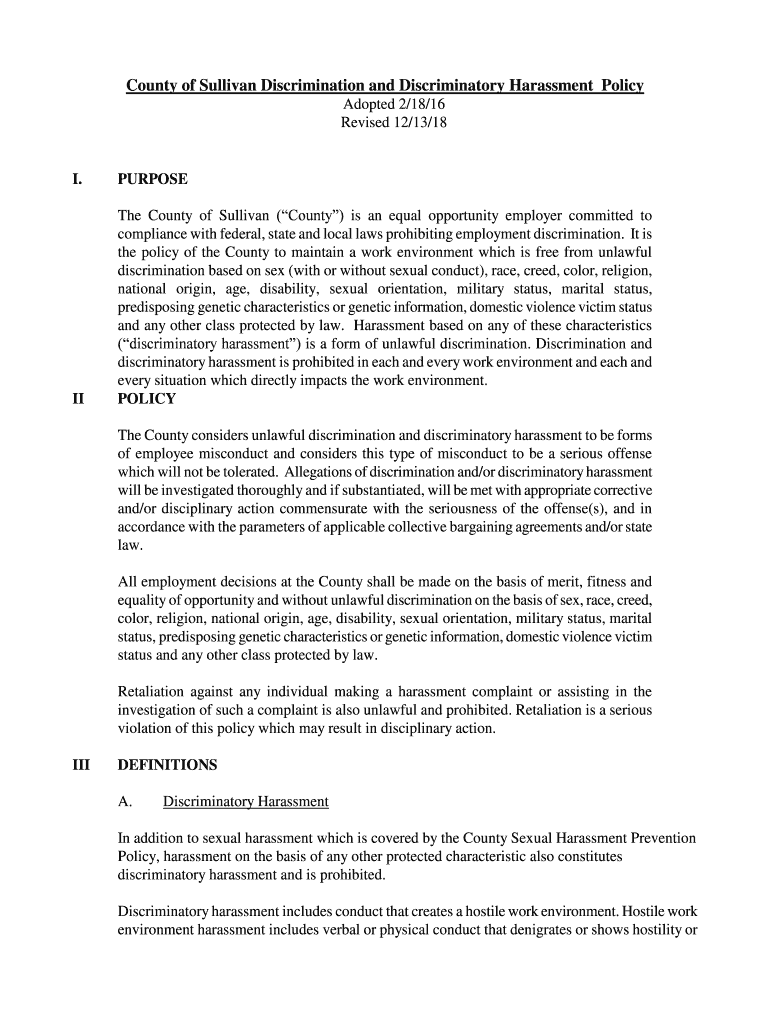 Get the free Anti-Discrimination Policy - Sullivan County