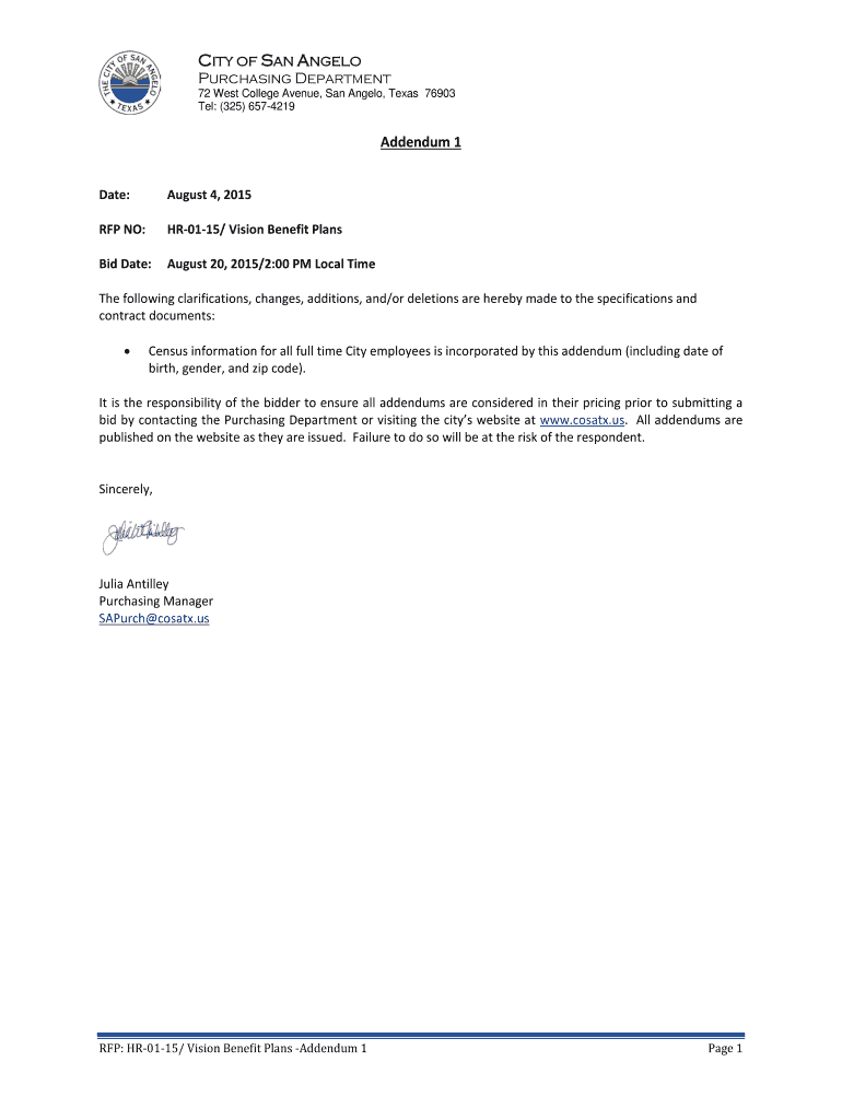 Date:August 4, 2015RFP NO:HR0115/ Vision Benefit Plasmid Date:August 20, 2015/2:00