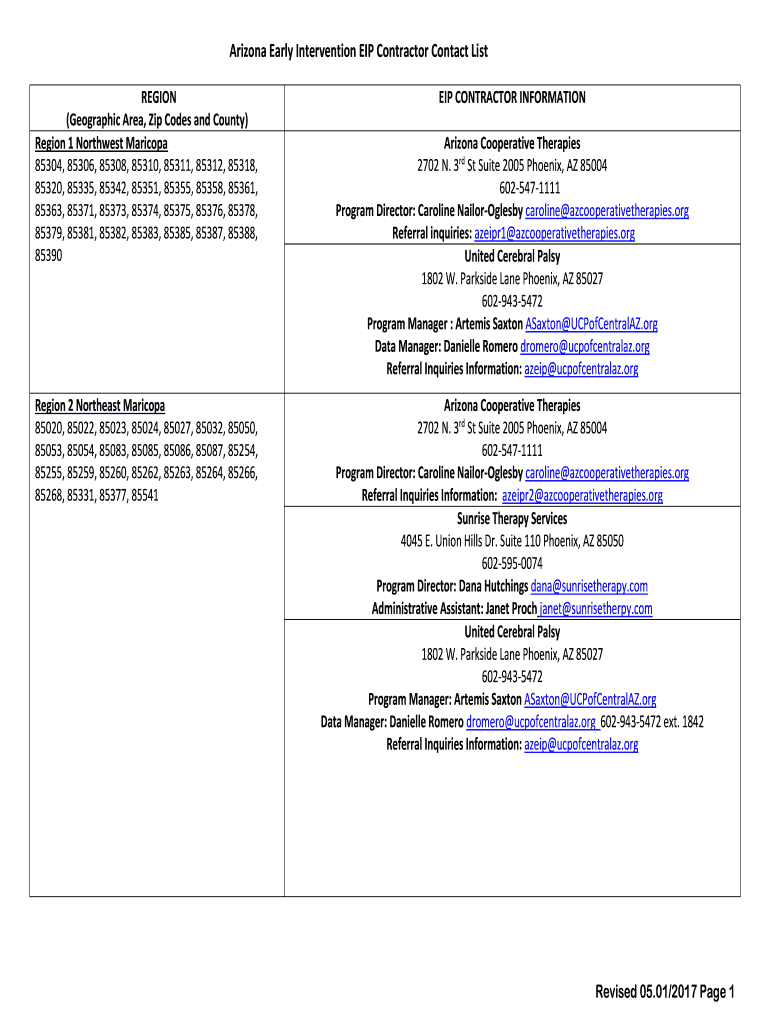 Get the free Arizona Early Intervention EIP Contractor Contact List