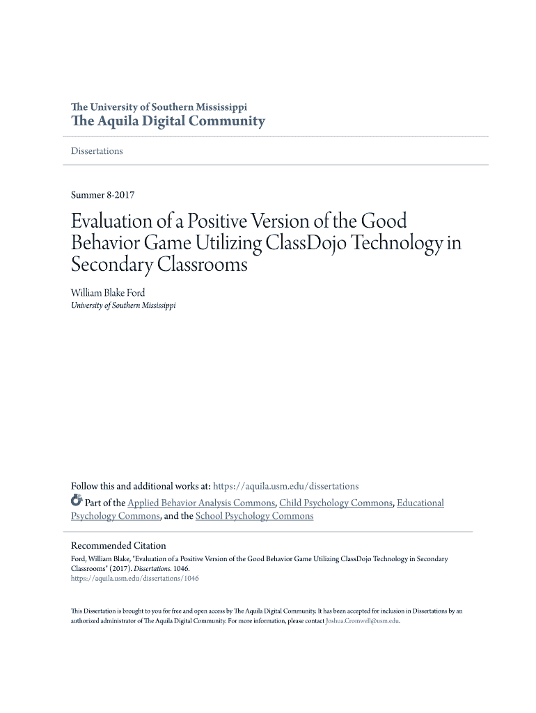 Get the free Evaluation of a Positive Version of the Good Behavior Game Utilizing ClassDojo Techn...