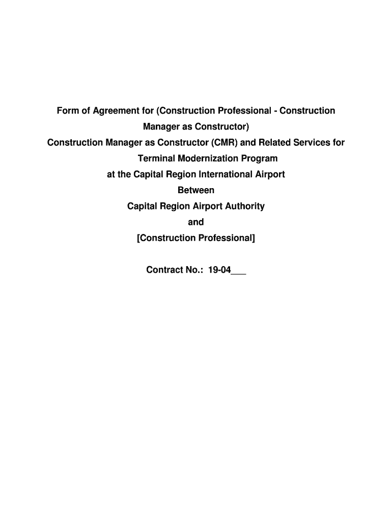 Form of Agreement for (Construction Professional Construction Manager as Constructor) Construction Manager as Constructor (CMR) and Related Services for Terminal Modernization Program at the Capital