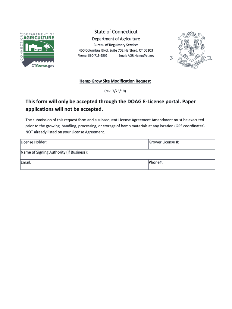 Phone: 8607132502PrintEmail: AGR. Hemp@ct.govern Grow Site Modification