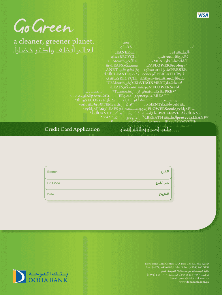 Green cleaner, greener planet. Credit Card ApplicationBranchBr. Code Date Doha Bank Card Center, P. O. Box: 3818, Doha, Qatar Fax : (+974) 445 6983, Hello Doha: (+974) 445 6000