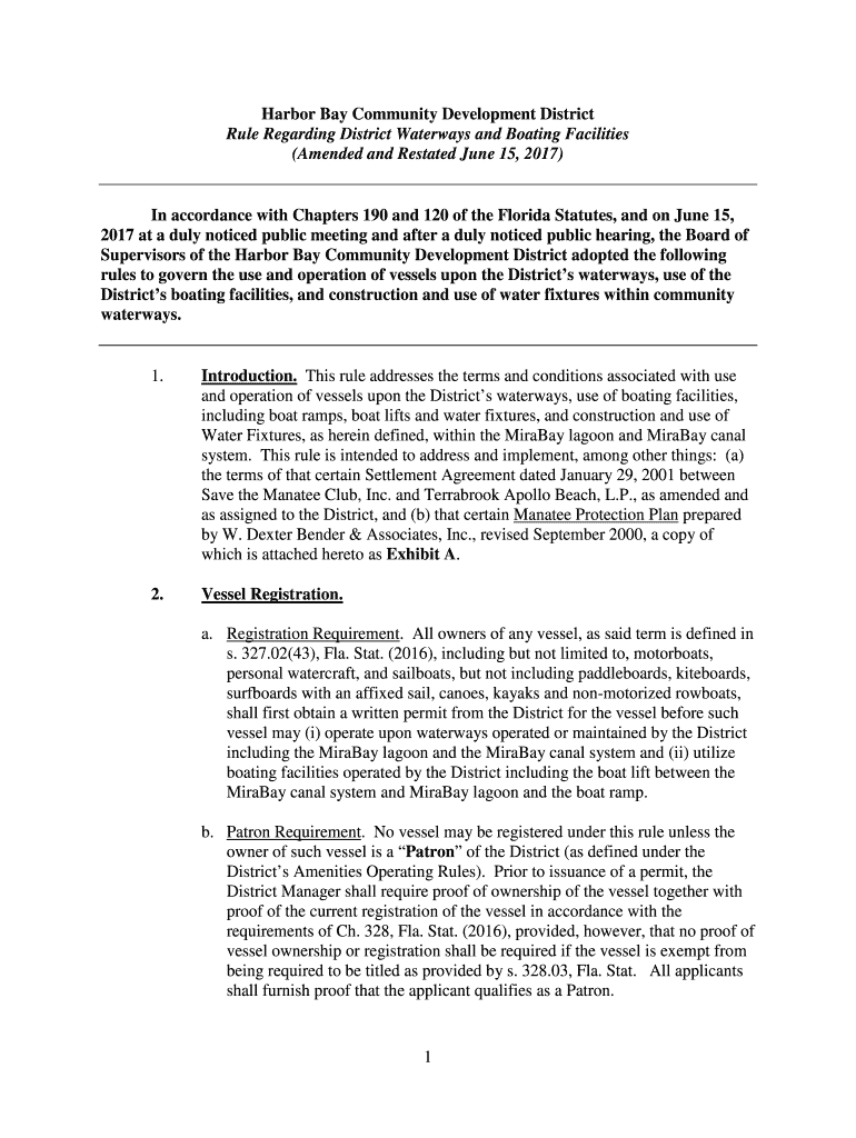 (Amended and Restated June 15, 2017)In accordance with Chapters 190 and 120 of the Florida Statutes,