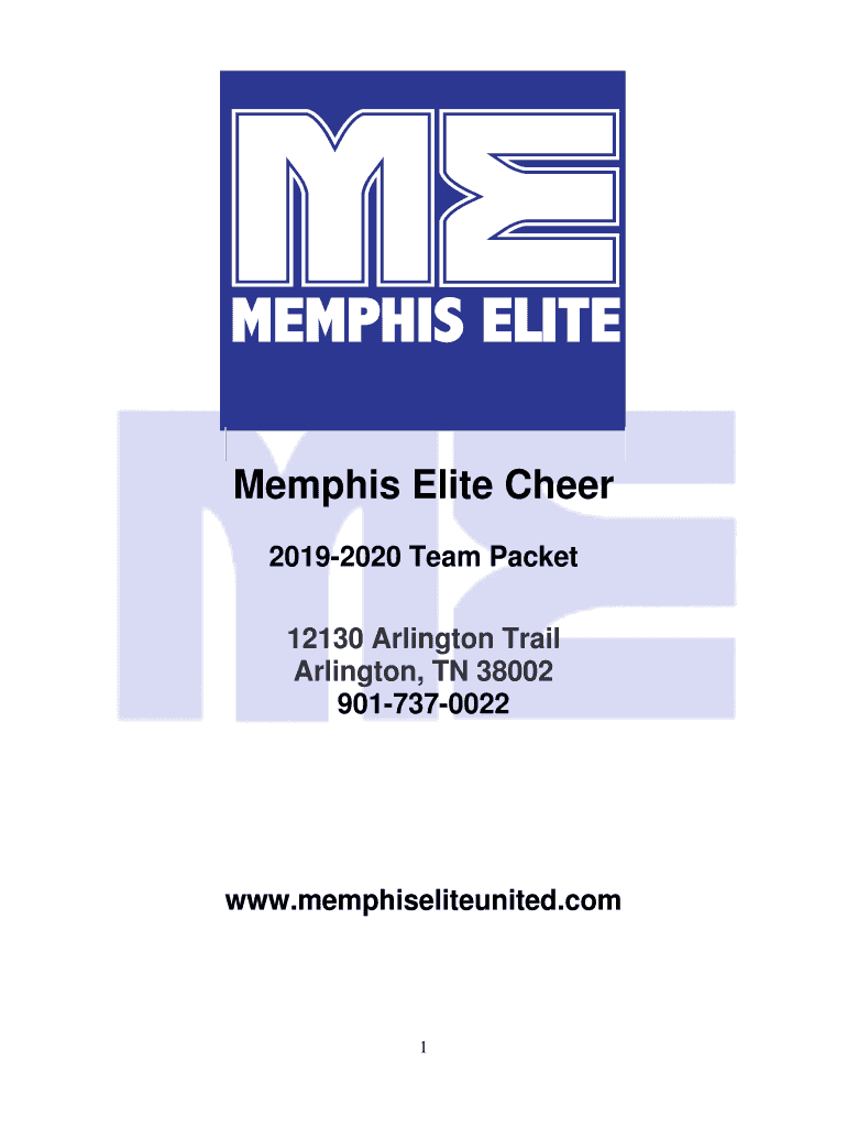 Custom Team Shirt Front.pdf112/5/161:25 PM Memphis Elite Cheer 20192020 Team Packet 12130 Arlington Trail Arlington, TN 38002 9017370022www.memphiseliteunited.com1Cheer & Dance 20192020 Welcome to