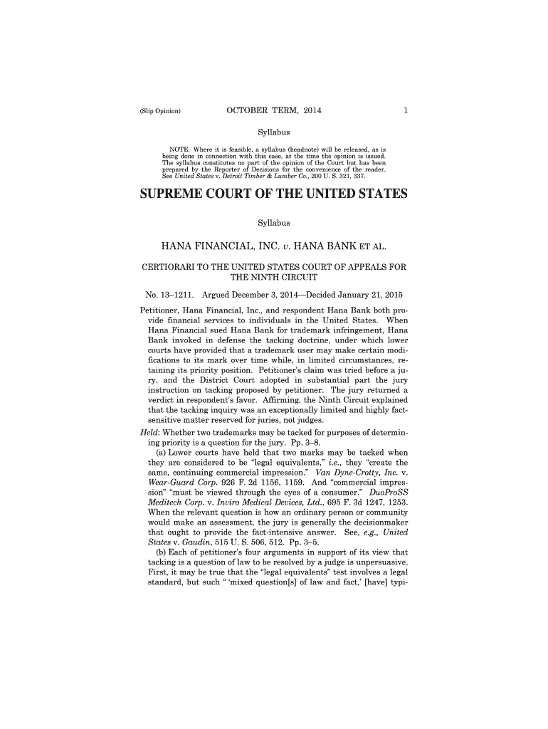 (Slip Opinion)OCTOBER TERM, 20141Syllabus NOTE: Where it is feasible, a syllabus (headnote) will be released, as is being done in connection with this case, at the time the opinion is issued. The