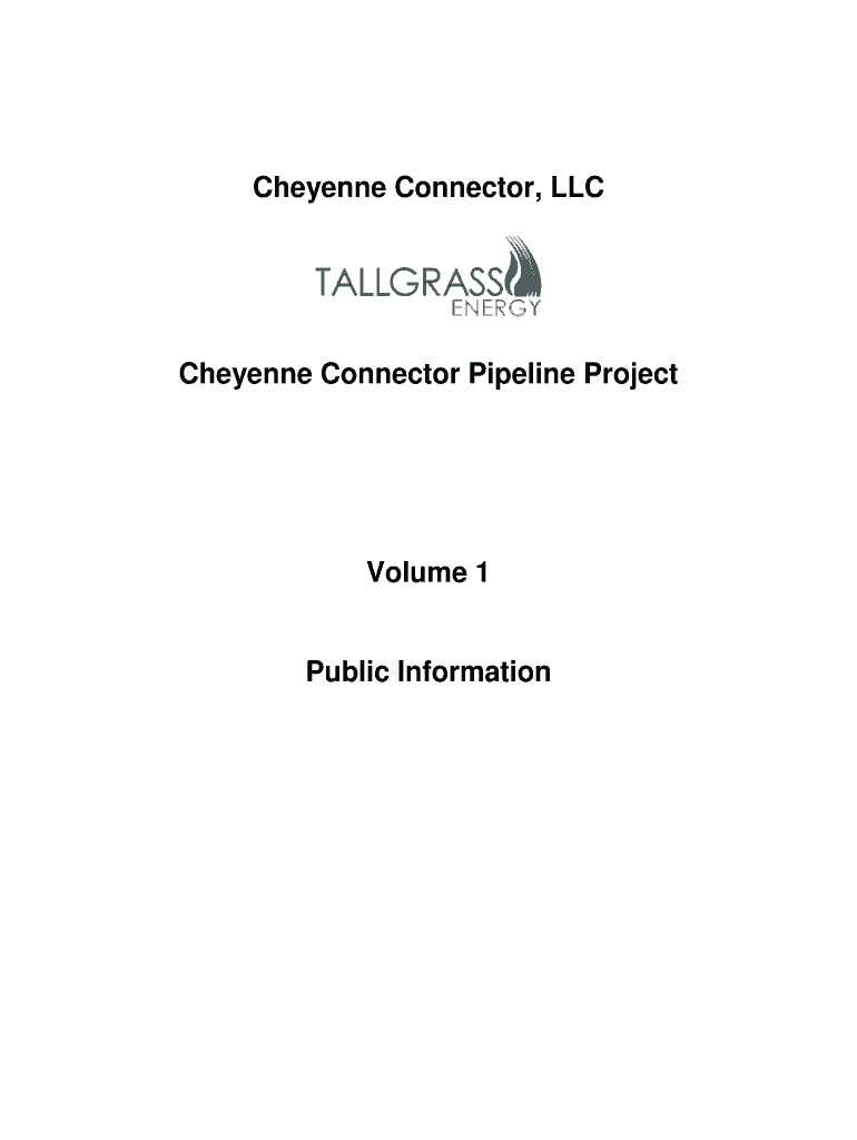 Cheyenne Connector, LLC Cheyenne Connector Pipeline ProjectVolume 1Public InformationCHEYENNE CONNECTOR, LLC March 2, 2018Federal Energy Regulatory Commission