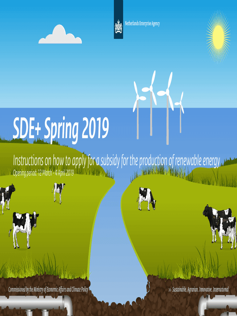 SDE+ Spring 2019 Instructions on how to apply for a subsidy for the production of renewable energy Opening period: 12 March 4 April 2019Commissioned by the Ministry of Economic Affairs and Climate